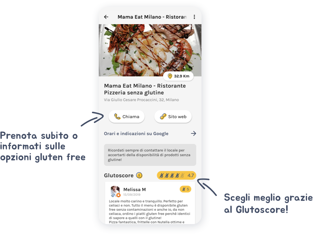 alle recensioni che menzionano il senza glutine. Infatti il Glutoscore è il nostro algoritmo che dà maggiore rilevanza a recensioni che contengono termini come "glutine" o "celiachia".